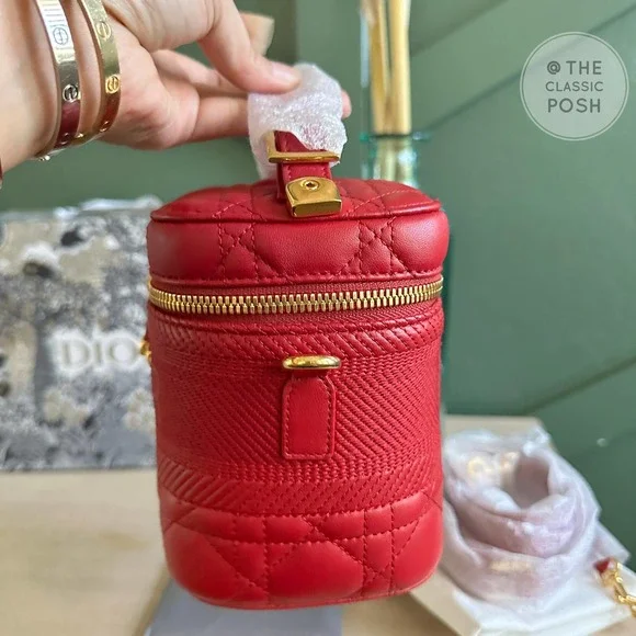 **POSHMARK PRICE IS FIRM DUE TO FEES THANKS FOR UNDERSTANDING.ALL ITEMS ARE CROSSPOSTEDANDCAN BE SOLD WITHOUT PRIOR NOTICE**INCLUDES : box, dust, card, tags, strapBrand new never used! Retails $3000 plus taxesThe DiorTravel vanity case is crafted in black supple lambskin and showcases shiny antique gold-finish metal details. It is enhanced by Cannage topstitching and a band embossed with the 'CHRISTIAN DIOR' signature. The design can accommodate a phone, a wallet, a case for AirPods and a notebook. The small accessory is an ideal daily companion and can be carried by hand, worn over the shoulder or crossbody thanks to its handle and removable shoulder strap.* 'CHRISTIAN DIOR' signature on the front* Zip closure* Top handle* 1 large compartment* 2 patch pockets* Removable and adjustable leather shoulder strap* Shiny antique gold-finish metal details* Made in ItalyDimensions: 18.5 x 13 x 10.5 cm / 7.5 x 5 x 4 inchesPLEASE ENLARGE ALL PICTURES. PICTURES ARE PART OF THE DESCRIPTION.SOLD AS IS. GUARANTEED AUTHENTIC. ALL SALES ARE FINAL.ALL ITEMS ARE CROSSPOSTED AND MAY BE SOLD WITHOUT PRIOR NOTICE.