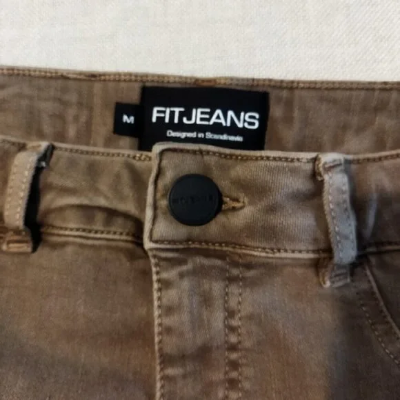 Fitjeans Pastel Flared - Brown Size MInseam 33''Fitjeans are the perfect everyday denim, providing comfort while complimenting all the right areas of your body. They have no waist gap and are super comfortable around the legs. High-waisted fitReal denim jeans with no waist gapCute bootcutMedium-thick denim fabric2-way, stretch in widthSoft and very comfortable jeansSuper stretchy fabricRecall-Technology™ retains shape after washing and using «Shaping» effectYKK®-zipper87% Cotton9% Polyester4% ElastaneWash at 30°C/86°F without fabric softener, do not tumble dry.